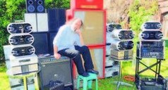 Jack Lear vom DigitalStudio Linda hat hier seine gesamte Verstärker- und Boxentechnik aufgefahren. "Damit kann ich locker den Kölner Dom beschallen", meint er. Für das Glockengeläut in Lebien hievt er nur zwei, dafür aber lautstarke Boxen auf den Kirchturm. (MZ-Foto: Kunze )
